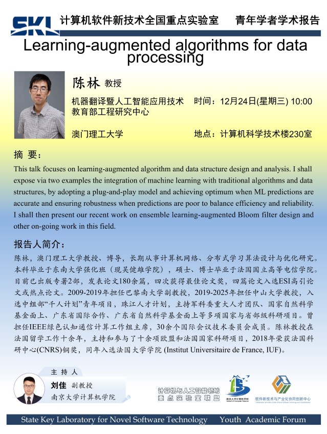 2025年12月24日“软件新技术讲坛”学术报告 - 陈林 教授