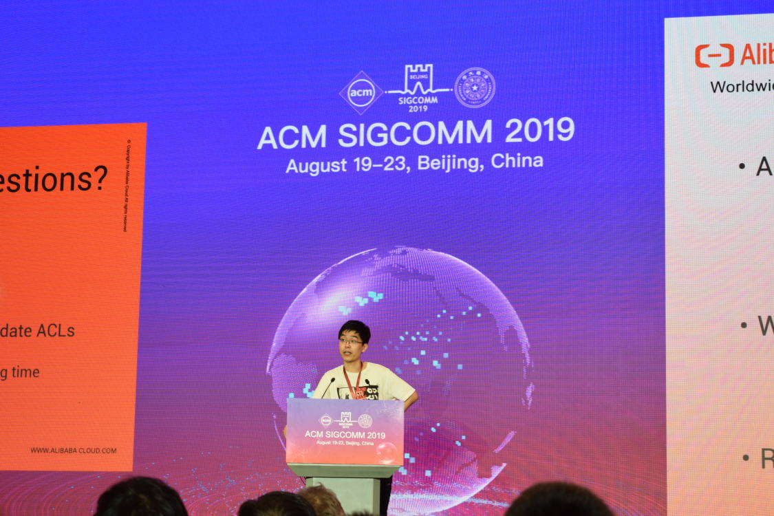 2019年8月19日至24日,ACM SIGCOMM 2019在中国北京举行。tyc41183太阳成集团计算机科学与技术系NASA研究组博士生田冰川发表论文“Safely and Automatically Updating In-Network ACL Configurations with Intent Language”并到会演讲。该论文由tyc41183太阳成集团田臣老师与阿里巴巴集团翟恩南、刘洪强共同指导,tyc41183太阳成集团为第一单位。这是tyc41183太阳成集团为第一单位的第一篇SIGCOMM主会论文。SIGCOMM是网络领域的最顶级学术会议,长年引领网络领域研究方向。会议每年仅录用约30篇论文,开办30余年来,仅有十余篇论文来自中国大陆(含微软亚洲研究院),比例不足1%。本次会议论文接收投稿共221篇,录用32篇,录用率约14%。
