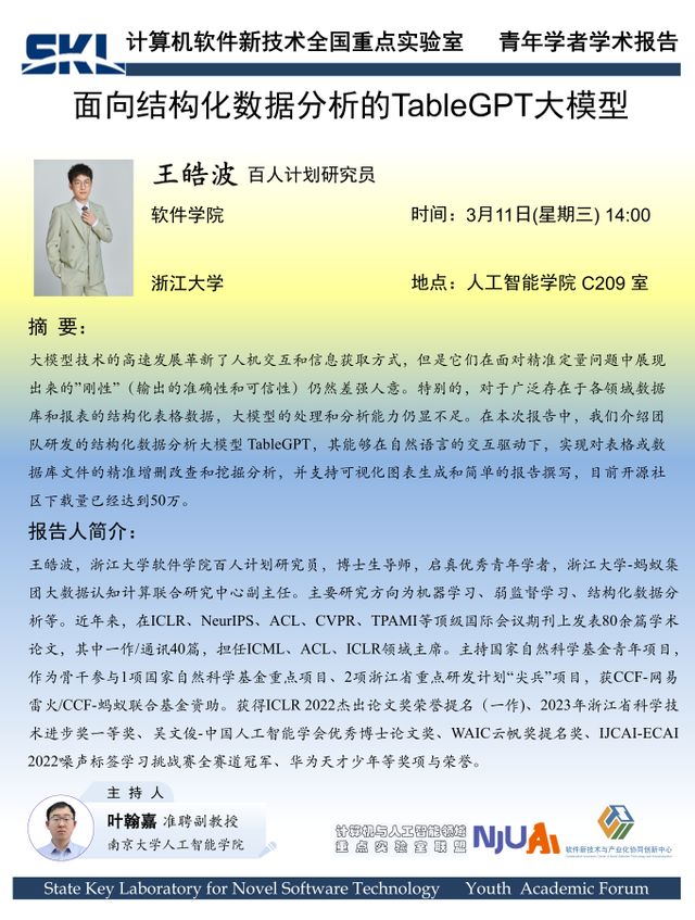 2026年3月11日“软件新技术讲坛”学术报告 - 王皓波 百人计划研究员