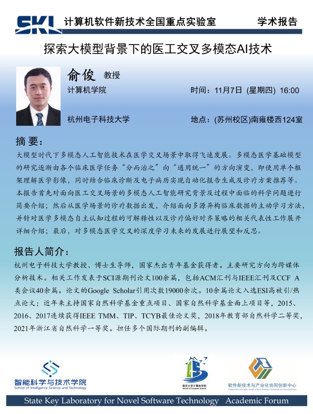 2024年11月7日 “软件新技术讲坛” 学术报告 - 俞俊 教授