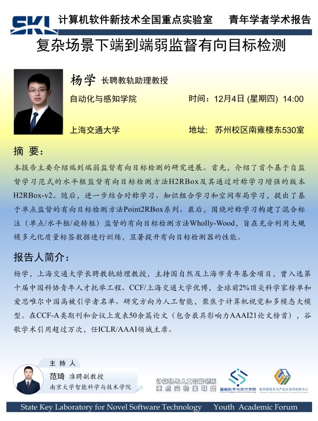 2025年12月4日“软件新技术讲坛”学术报告 - 杨学 长聘教轨助理教授