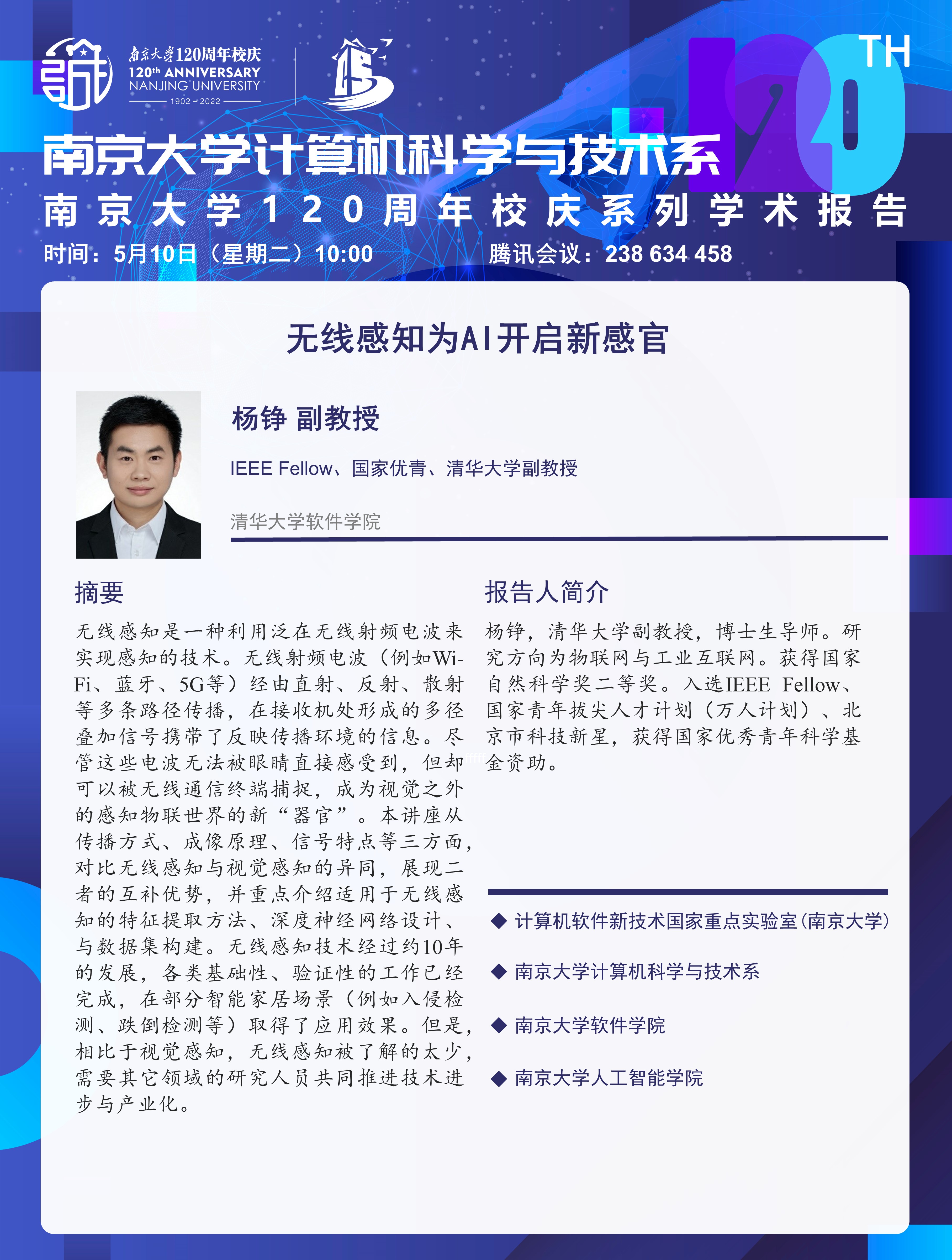 tyc41183太阳成集团120周年校庆系列学术报告—无线感知为AI开启新感官