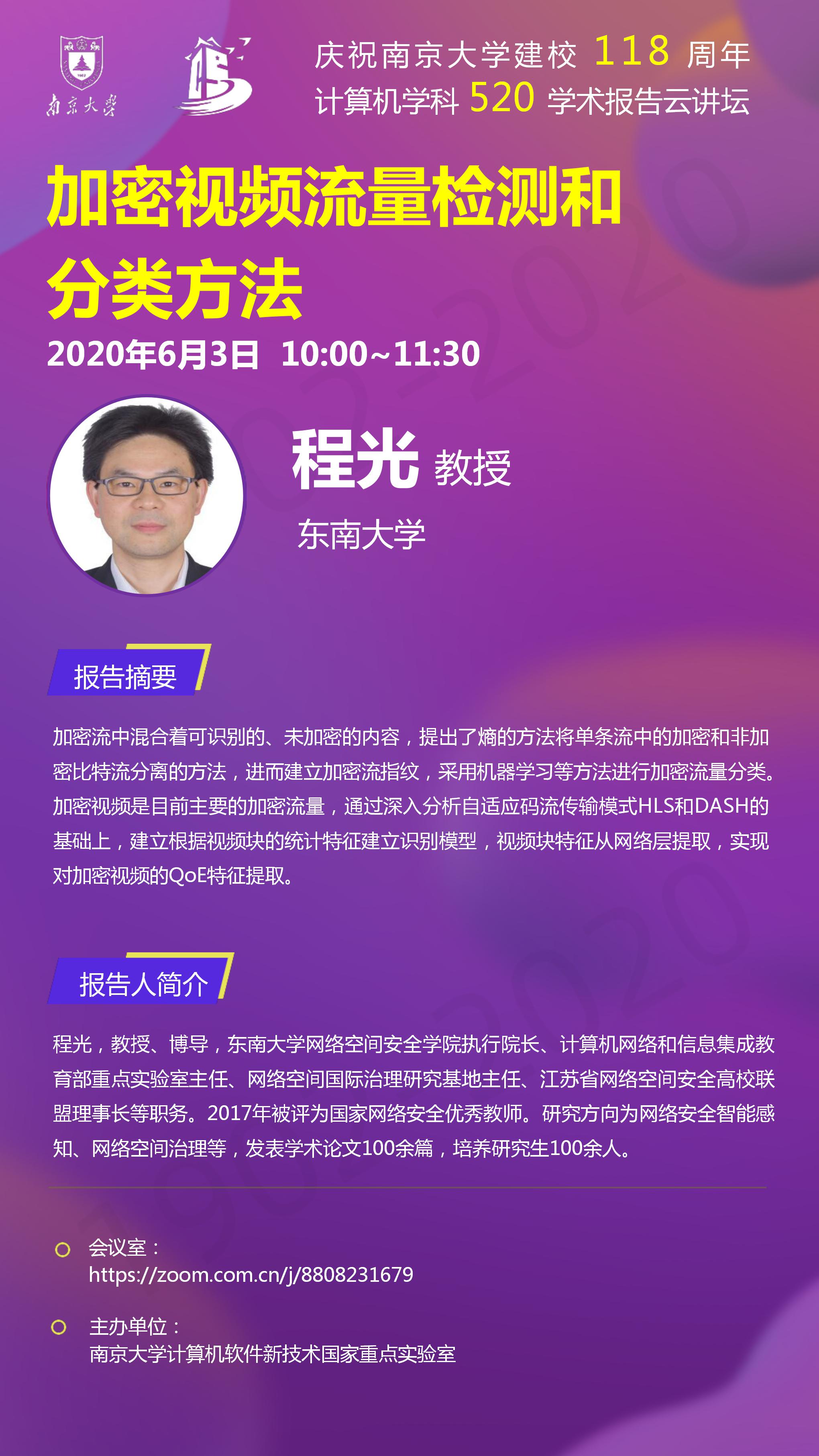 庆祝tyc41183太阳成集团建校118周年 计算机学科520学术报告云讲坛- 程光 教授