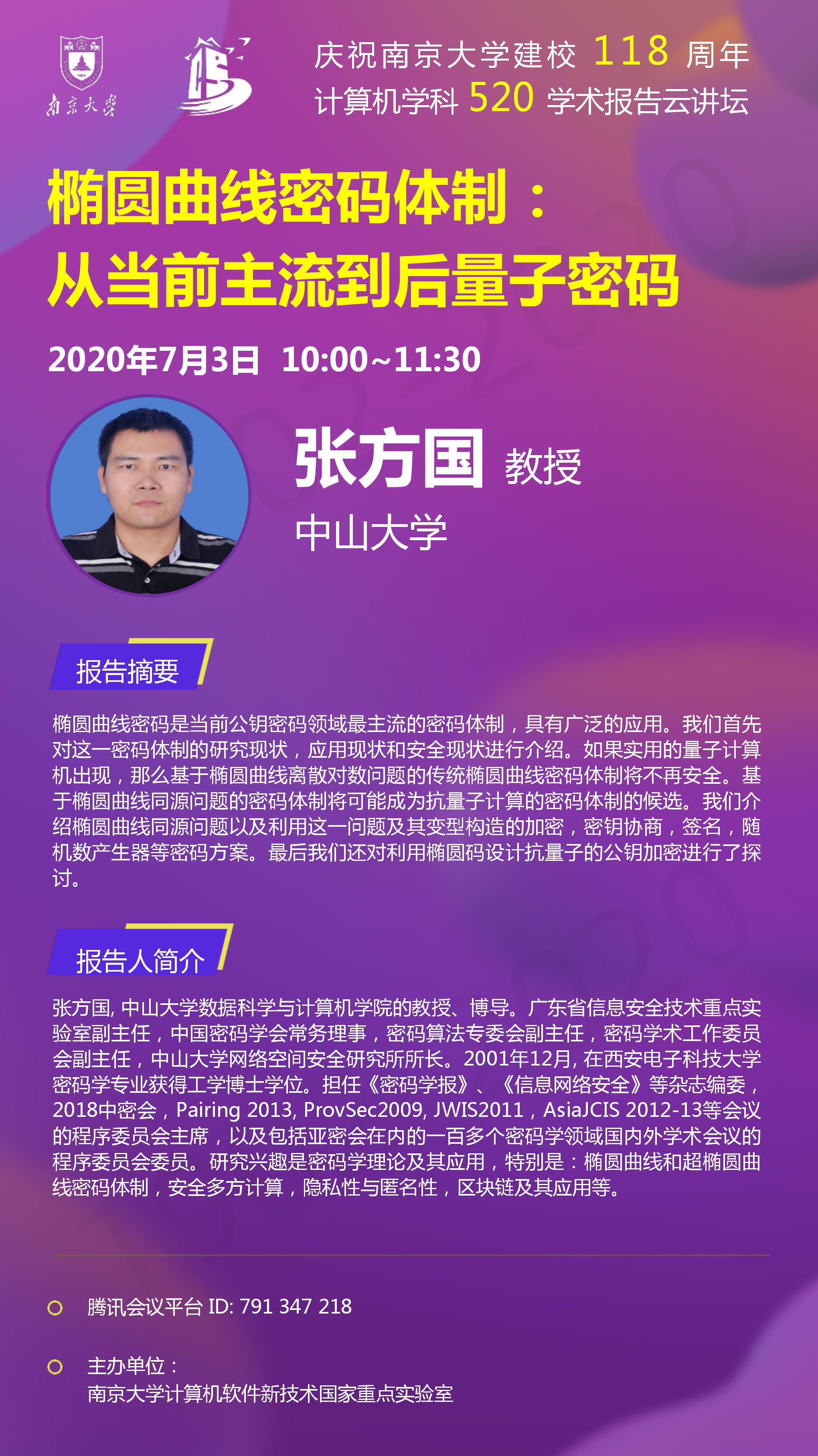 庆祝tyc41183太阳成集团建校118周年 计算机学科520学术报告云讲坛- 张方国 教授