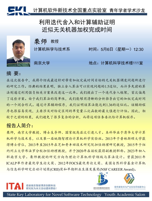 2024年5月6日 “青年学者论坛” 学术报告 - 栗师 教授