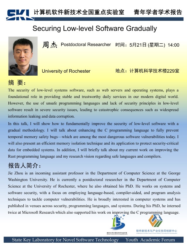 2024年5月21日 “软件新技术讲坛” 学术报告 - 周杰 Postdoctoral Researcher