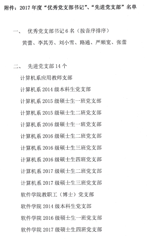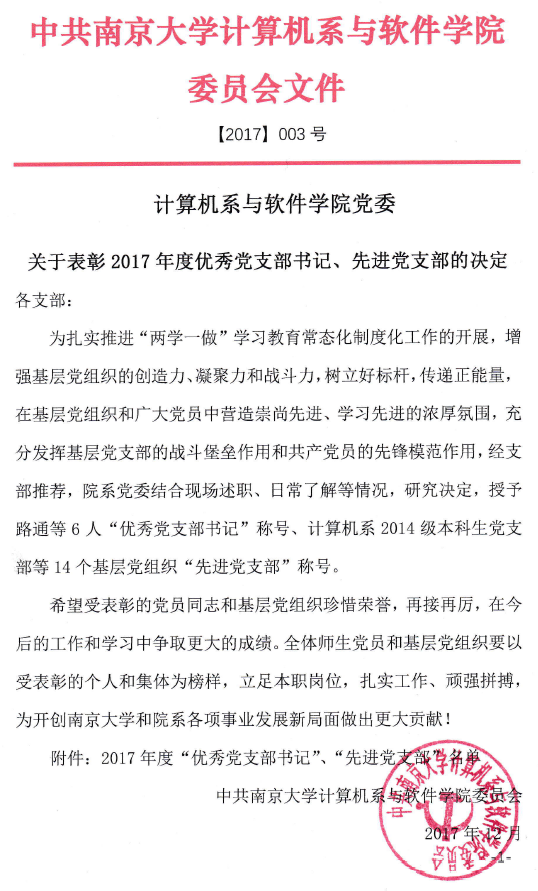 关于表彰2017年度优秀党支部书记、先进党支部的决定