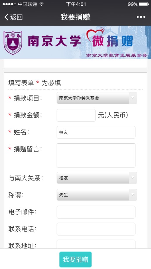 (四)、填入捐赠金额等信息后,点击