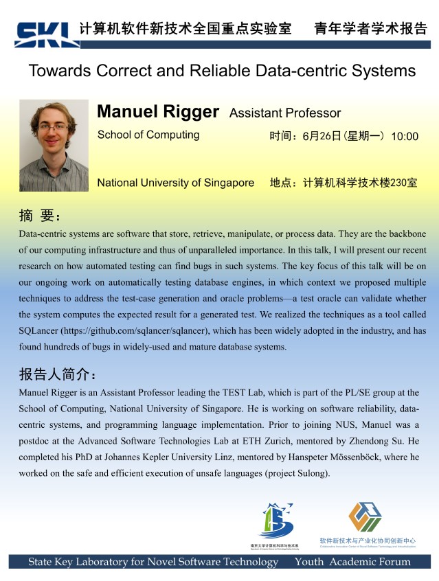 2023年6月26日 “软件新技术讲坛” 学术报告 - Manuel Rigger Assistant Professor