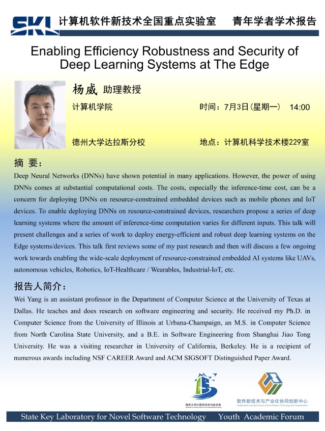2023年7月3日 “软件新技术讲坛” 学术报告 - 杨威 助理教授