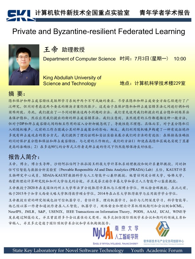 2023年7月3日 “软件新技术讲坛” 学术报告 - 王帝 助理教授
