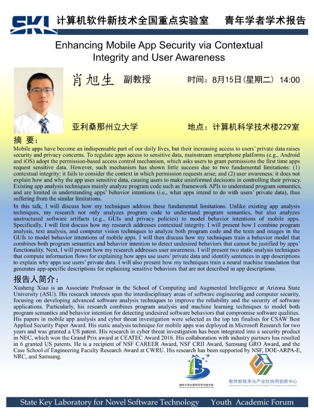 2023年8月15日 “软件新技术讲坛” 学术报告 - 肖旭生 副教授