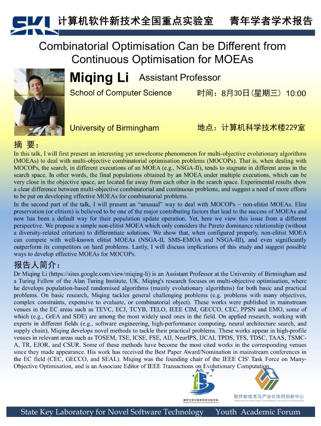 2023年8月30日 “软件新技术讲坛” 学术报告 - Miqing Li Assistant Professor