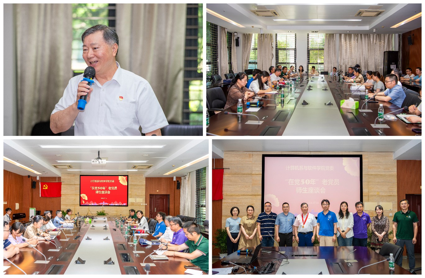 7月4日上午,计算机系与软件公司党委和关工委联合举办“在党50年”老党员和青年师生座谈会。出席座谈会的有党委书记武港山、党委副书记宫玲琳、党委委员张剡、曹迎春以及计算机系应用党支部、系行政系统党支部全体党员、各党支部联络委员、员工党员代表30多人。会议由宫玲琳主持。