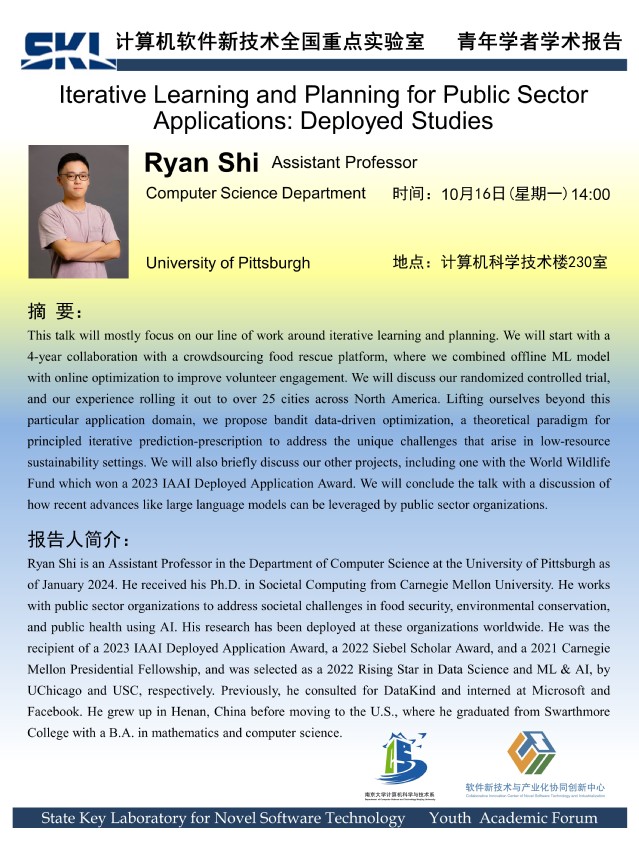 2023年10月16日 “软件新技术讲坛” 学术报告 - Ryan Shi Assistant Professor