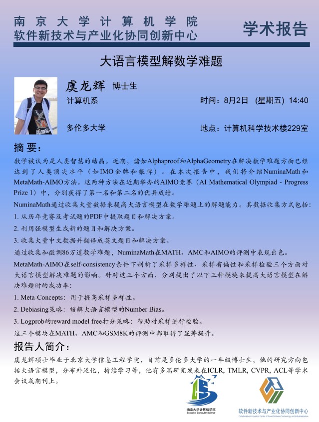 2024年8月2日 学术报告 - 虞龙辉 博士生