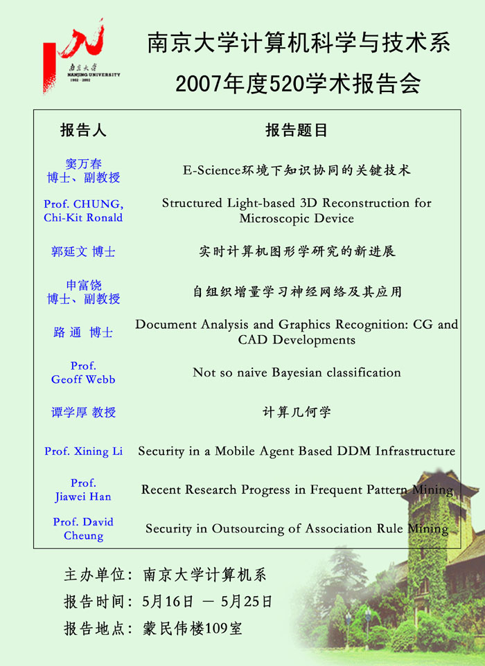 时间: 5月 19日 14:30—16:30 地点:浦口II-103