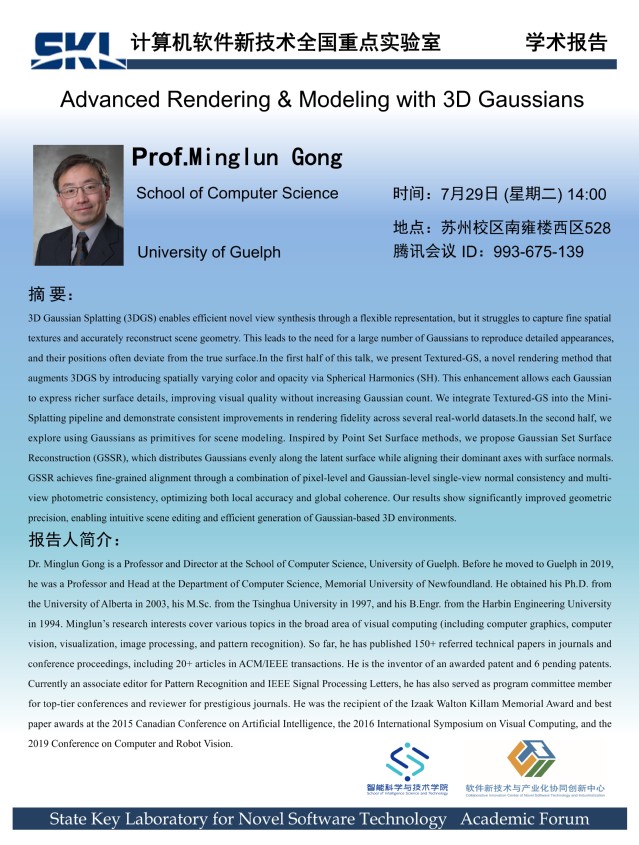 2025年7月29日 “软件新技术讲坛” 学术报告 - Prof.Minglun Gong