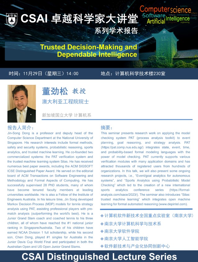 2023年11月29日 “CSAI卓越科学家大讲堂” 学术报告 - 董劲松 教授