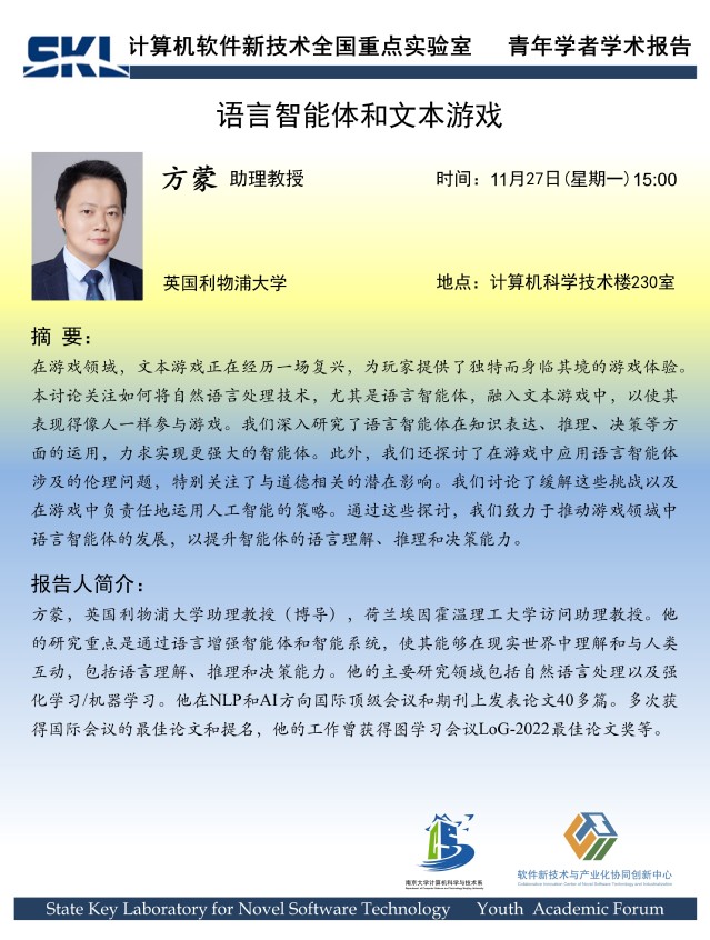 2023年11月27日 “软件新技术讲坛” 学术报告 - 方蒙 助理教授