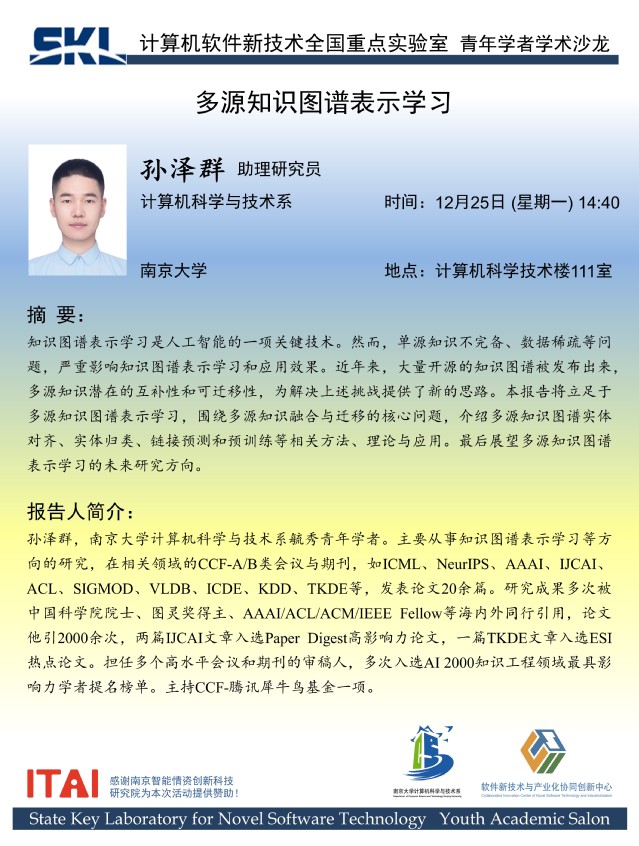 2023年12月25日 “青年学者论坛” 学术报告 - 孙泽群 助理研究员