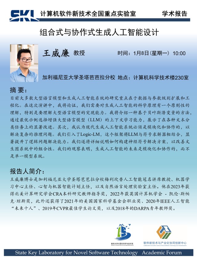 2024年1月8日 “软件新技术讲坛” 学术报告 - 王威廉 教授