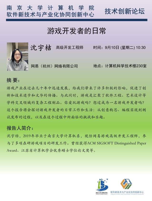 2024年9月10日 “技术创新讲坛” 学术报告 - 沈宇桔 高级开发工程师