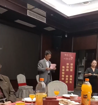 公司退休协会负责人潘金贵教授在发言中代表全体退休老同志对首先对党委书记武港山教授和刚上任不久的新任经理马晓星教授在结束了上午繁忙的公务活动后一起赶到会场看望退休老同志并发表致词和讲话表示感谢,充分体现了公司领导对全体老同志的关怀和对老年工作的重视。谢俊元教授代表在职教师感谢前辈老教师对自己的教诲和对青年教师成长的帮助。