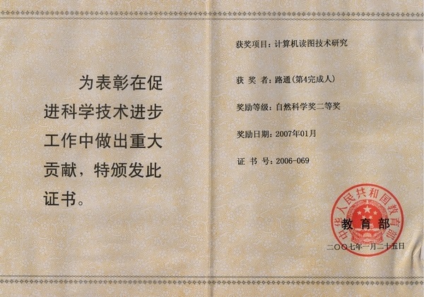 16. The Second Prize of Natural Science of Ministry of Education of the People's Republic of China, 2007
